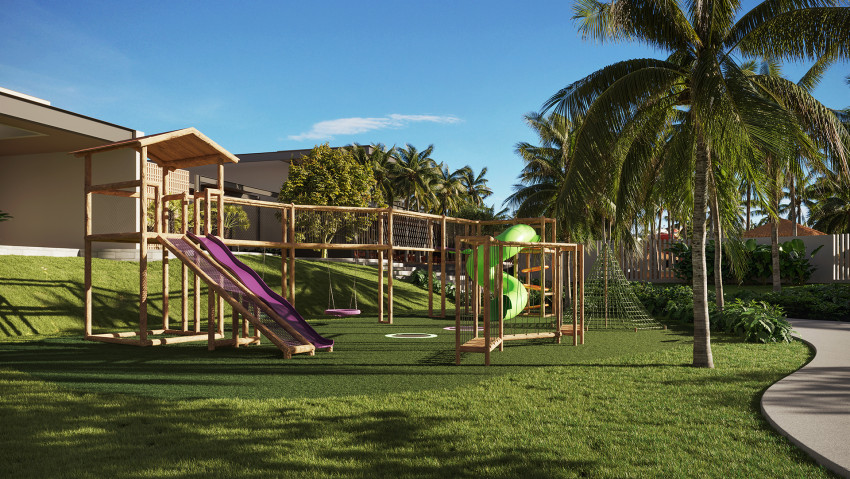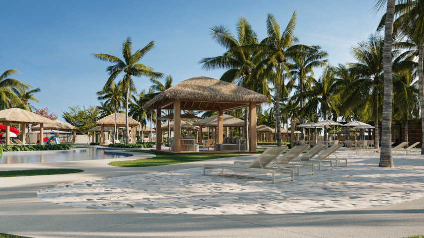 Uma experiência singular: a sensação de estar de férias sob a sombra de coqueiros em uma praia. Apresentamos pela primeira vez em nossos empreendimentos.