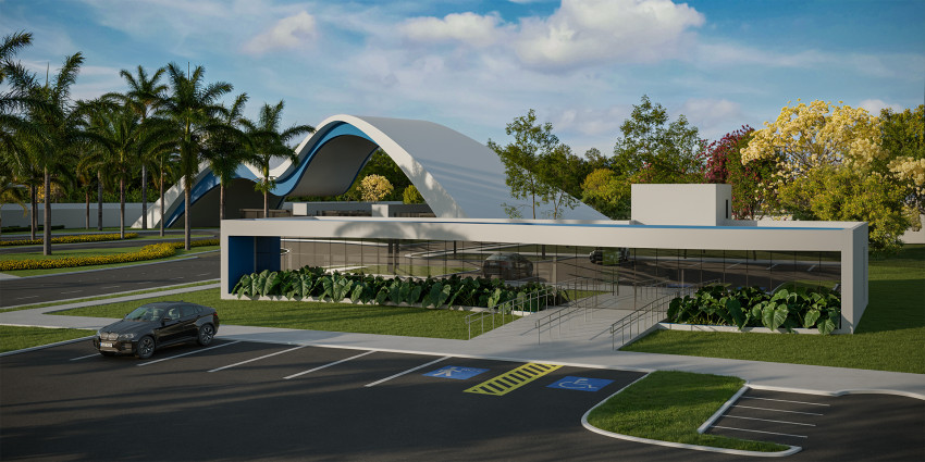 - Em conformidade com o plano de segurança, o prédio administrativo fica localizado na parte externa do condomínio e será entregue totalmente mobiliado e equipado.